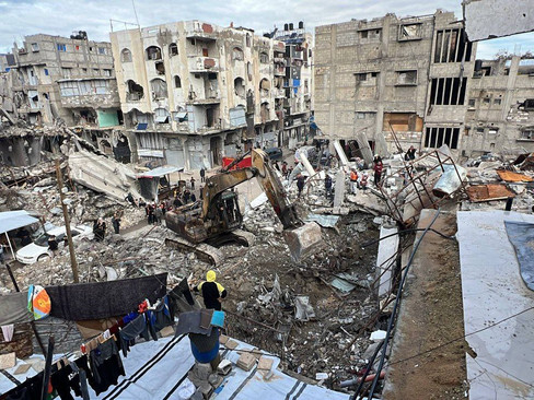 1. Jabalia refugee camp and town - teams restoring infrastructure damaged by bombing, complain of severe shortages of equipment and construction materials.